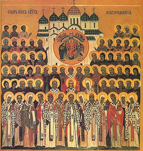 - святителие Новгородстии, преподобнии, и Христа ради юродивии, и вси праведнии,