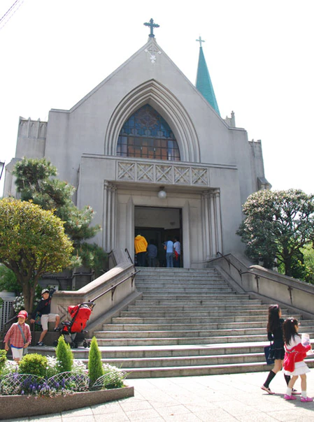 Церковь Святейшего Сердца Иисуса в Иокогаме была построена в 1906 году. Первоначально храм имел две колокольни. 1 сентября 1923 года церковь значительно пострадала в результате Великого землетрясения Канто, которое полностью разрушило оригинальный фасад храма и колокольни. Сегодняшний храм является реконструкцией первого храма и его строительство было завершено в 1933 году.