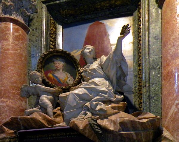 Скульптурно-архитектоническое обрамление часов по сторонам карниза создано в 1785 году архитектором Джузеппе Валадье.
