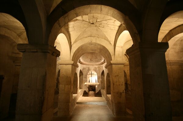 Как уже было сказано, в соборе две крипты. Нижняя осталась от церкви V века, разрушенной в ходе нашествия сарацинов. Верхняя романская крипта построена в XI веке.