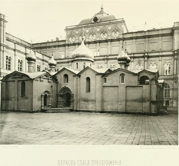 Памятник пострадал во время московского пожара 1554 года, также на его облик повлияло присоединение Новгорода к Москве в 1570 году. В делах Оружейной палаты под 1584 годом упоминается у Спаса на дворце придел Павла Фивейского, Иоанна Кущника и Симеона Богоприимца. К собору с южной стороны был пристроен храм во имя Св. Мучеников Гурия, Самона и Авива. В ружной книге Оружейной палаты 1631 года означены приделы: 1) Трех Исповедников, 2) Трех Святителей, 3) Спиридона Чудотворца, 4) Великомученика Мины, 5) Св. Михаила Архангела.