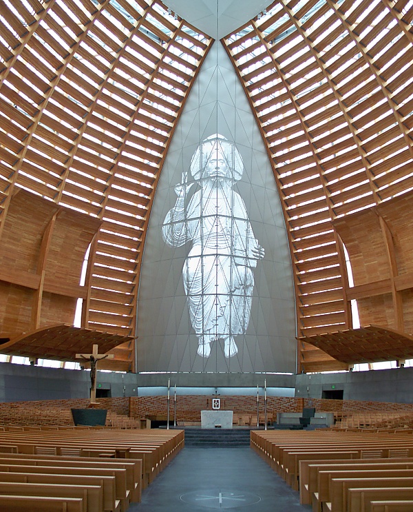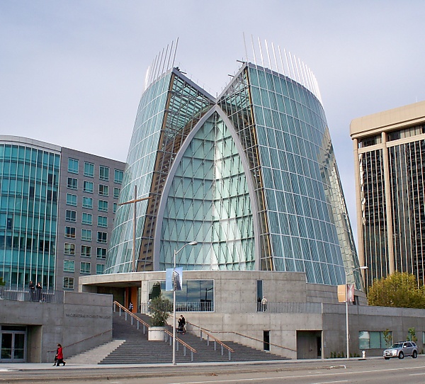 Первоначально проектом церкви занимался испанский архитектор Сантьяго Калатрава. Впоследствии проектирование собора было поручено американскому архитектору Крейгу Хартману, дизайнеру международного аэропорта Сан-Франциско в сотрудничестве со строительной фирмой «Skidmore, Owings and Merrill».