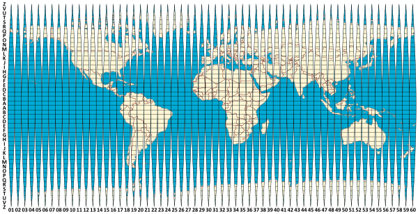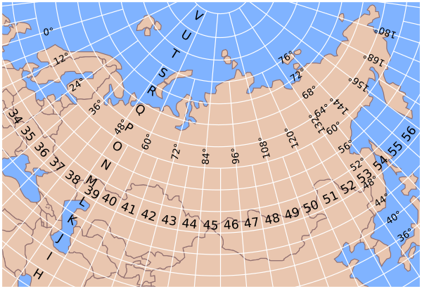 Приполярные круглые области (с широтой свыше 88°) обозначаются буквой Z без указания номера колонны.