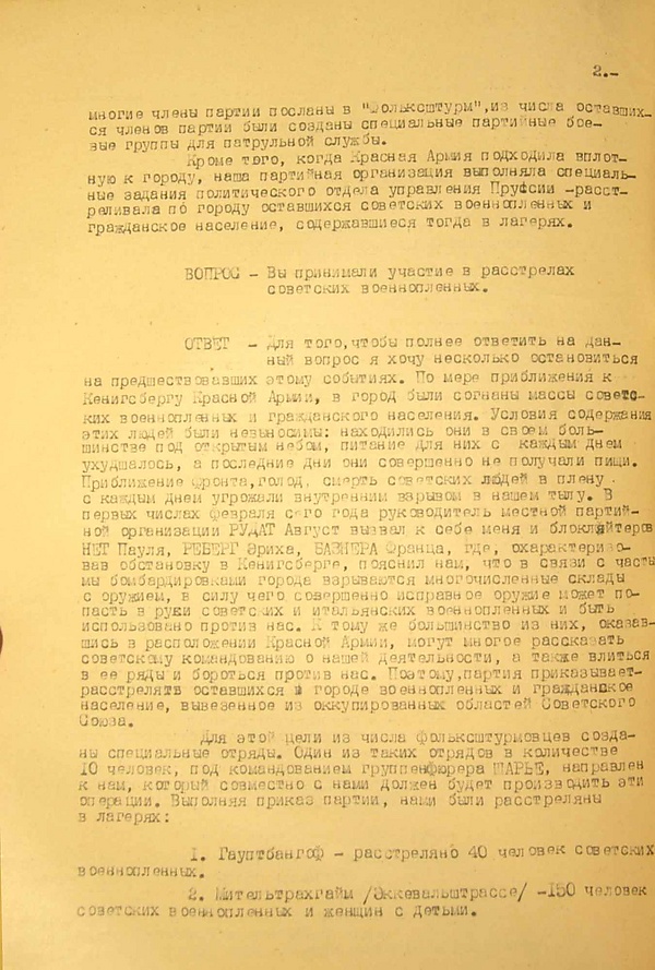 - 2Б — учёт военнопленных. Сотрудники отдела вели регистрацию лиц, прибывающих в лагерь, и следили за их перемещением. Отдел располагал картотекой фамилий и номеров, присвоенных военнопленным.