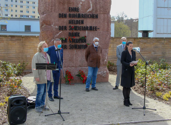 Восьмиметровый мемориал с надписью «Честь славных героев Советской Армии, спасибо народам Советского Союза» был открыт 5 мая 1971 года. Мемориал находится на Вюрцбургерштрассе в Зуле; На момент открытия она называлась Улицей германо-советской дружбы[1]. С тех пор здесь проходят официальные празднования Дня освобождения Германии от фашизма.