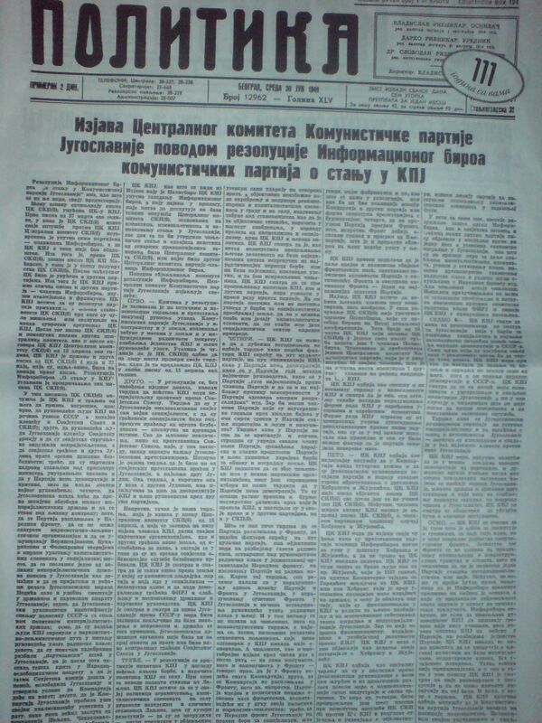 Югославские власти приняли ряд мер по контрпропаганде. В ноябре 1948 года Тито в Скупщине говорил об «империалистической политике СССР в отношении малых народов, направленной на их экономическое и политическое закабаление»[79].