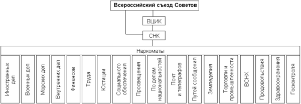 ЦИК СССР образовывал исполнительный и распорядительный орган — Совет Народных Комиссаров СССР во главе с Председателем СНК СССР.