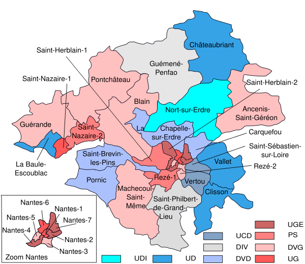 - Президент — Мишель Менар (Социалистическая партия, кантон Нант-7)