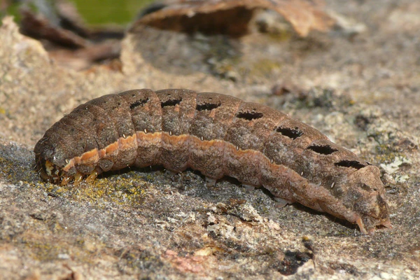Гусеница, длиной до 35-37 мм, изначально имеет зелёную окраску, постепенно становясь зеленовато- или буровато-серой. Боковая линия грязно-жёлтая или оранжевая, на спине заметны косые чёрные штрихи. Голова желтоватая с бурым рисунком[9][8][11].