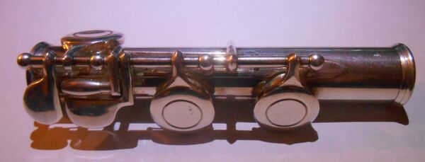 У большой флейты головка прямая, но существуют и загнутые головки — на детских инструментах, а также на альтовых и басовых флейтах, чтобы инструмент было удобнее держать. Головка может быть сделана из различных материалов и их комбинаций — никеля, дерева, серебра, золота, платины. Корпус профессиональных флейт изготавливается из серебра, золота, платины и редких пород древесины[11][12][13][14][15][16]. Ученические инструменты — из более дешёвых сплавов с покрытием из никеля, цинка, серебра. Изредка встречаются также флейты из эбонита[17], стекла и пластика.