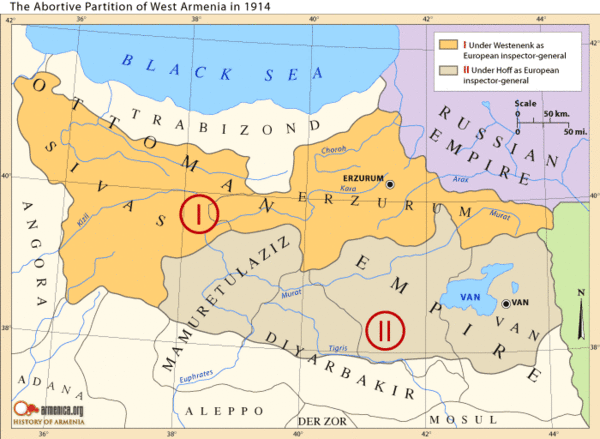 Нужно, конечно, признать, что армяне не получат тех обширных прав самоуправления, которые хотел обеспечить за ними первоначальный русский проект. Вместо предполагавшегося соединения всех местностей, населённых армянами, в одну провинцию с одним генерал-губернатором во главе, пришлось довольствоваться образованием двух секторов под надзором двух генеральных инспекторов и с включением в эти секторы частей вилайетов, населённых исключительно мусульманами.