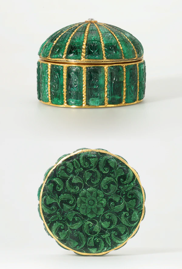 Коллекция насчитывает почти 600 личных украшений[39], а также более 600 колец[40] и 200 предметов роскоши из королевских мастерских империи Великих Моголов[41]. В совокупности это самая полная опубликованная коллекция исламских украшений[39]. Украшения включают почти все виды — от браслетов и амулетов до пуговиц и брошей — начиная с VII века и далее. Они украшены драгоценными камнями, эмалью или чернью[39]. Предметы коллекции Фатимидов имеют филигранный стиль «верёвка и зернь», характерный для Египта или Сирии[39]. Среди предметов Моголов — рубин с выгравированными именами императоров Шах-Джахана и Джахангира[41]. Шкатулка из Индии Моголов XVII века состоит из 103 выгравированных изумрудов в золотой оправе, увенчанной огранённым алмазом[42]. Большинство эмалированных золотых предметов, изготовленных для двора Великих Моголов, сейчас находятся в регалиях монархов Ирана или в Эрмитаже в России; исключение составляет восьмиугольная шкатулка из коллекции Халили, датируемая примерно 1700 годом[43]. Чаша для кальяна из Мевара в Индии XVIII в. сделана из золота с красочным эмалевым декором[44]. Золотой значок, ошейник и звезда, составляющие орден Льва и Солнца, украшены эмалью и драгоценными камнями. Он был подарен Фетх-Али-шахом Каджаром из Ирана британскому дипломату Джону Макдональду Киннейру[45].