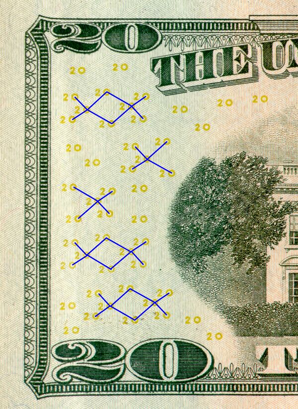 Большая часть колец принадлежит к какому-нибудь созвездию, которые расположены на банкноте в разных ориентациях, создавая впечатление их случайного расположения.