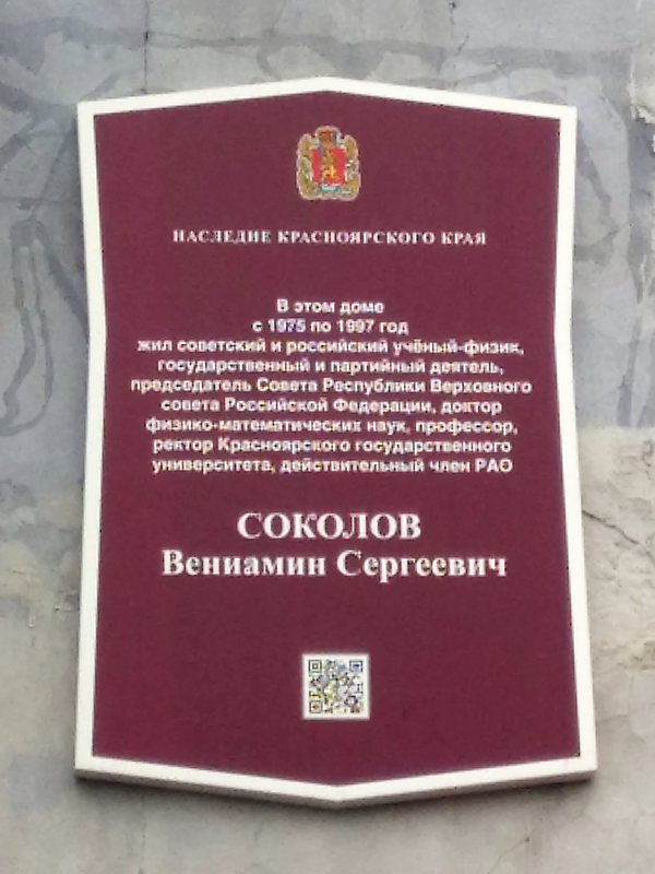 - Шапарев Н. Я. Соколов, Вениамин Сергеевич // Енисейский энциклопедический словарь / Гл. ред. Н. И. Дроздов. — Красноярск: КОО Ассоциация «Русская энциклопедия», 1998. — С. 573. — 736 с. — 10 000 экз. — ISBN 5-88329-005-1.