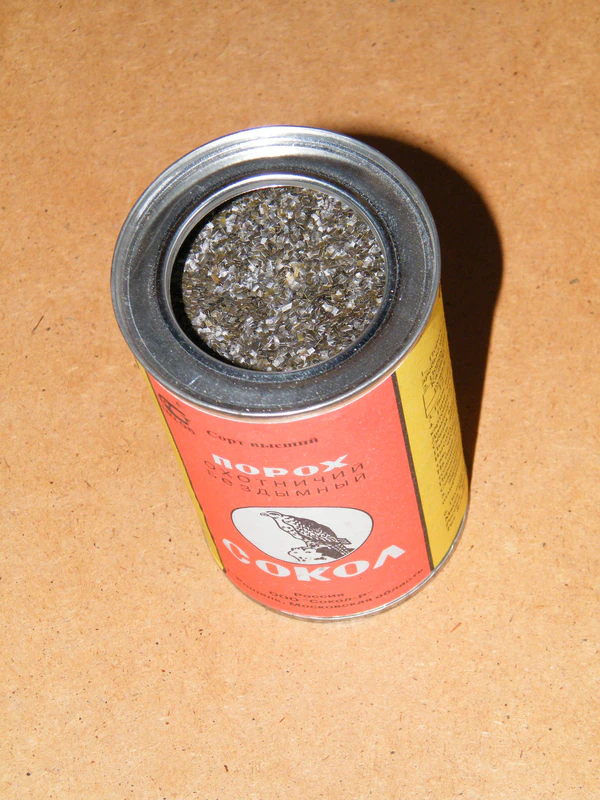 С начала 1980-х годов порох «Сокол» выпускают в 100, 200, 250 и 500 граммовых банках.