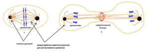 - Миозин 2 — микрофиламенты мышечных клеток (толстые или моторные филаменты) — белковые нити обеспечивают работу по сжатию кольца (диаметр 15 нм).