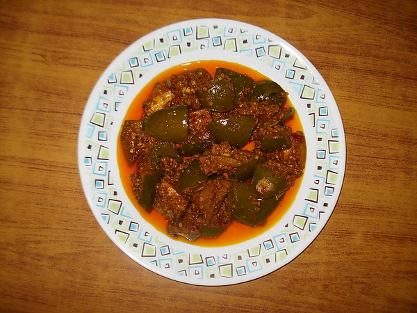 Манго быстро нарезают на кусочки среднего размера примерно 2 см х 2 см, используя прочные и острые ножи/резаки, чтобы не повредить структуру продукта. Кусочки промакивают хорошо впитывающей мягкой тканью — как правило, старым стерилизованным хлопковым сари без вышивки. Затем их маринуют в порошкообразной горчице, порошке красного перца чили (сушёном и измельчённом или сушёном, обжаренном и измельчённом), соли и масле имбиря. Соления выдерживают от четырёх до восьми недель, периодически перемешивая содержимое для того, чтобы маринад был однородным[14].