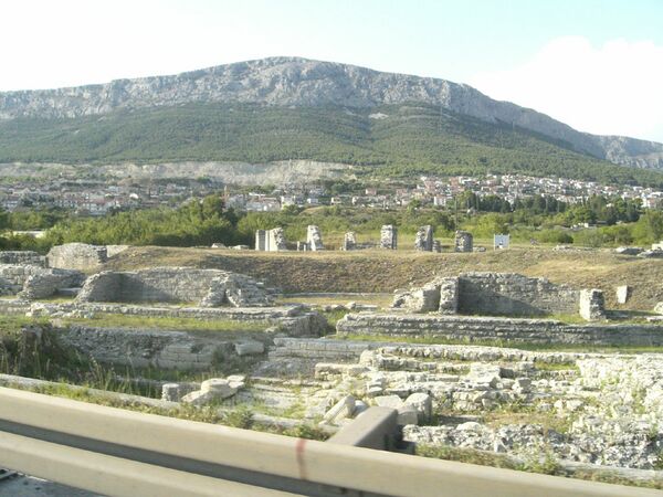 Укреплённый портовый город был основан иллирийцами, а в IV веке до н. э. его завоевали греки. В то время город занимал выгодное стратегическое положение на реке Ядро на перекрёстке путей, ведущих вдоль побережья, и древней дороги через ущелье из Клиса вглубь страны.