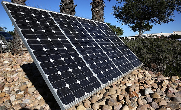Со́лнечная батаре́я, солнечная панель — объединение фотоэлектрических преобразователей (фотоэлементов) — полупроводниковых устройств, прямо преобразующих солнечную энергию в постоянный электрический ток, в отличие от солнечных коллекторов, производящих нагрев материала-теплоносителя.