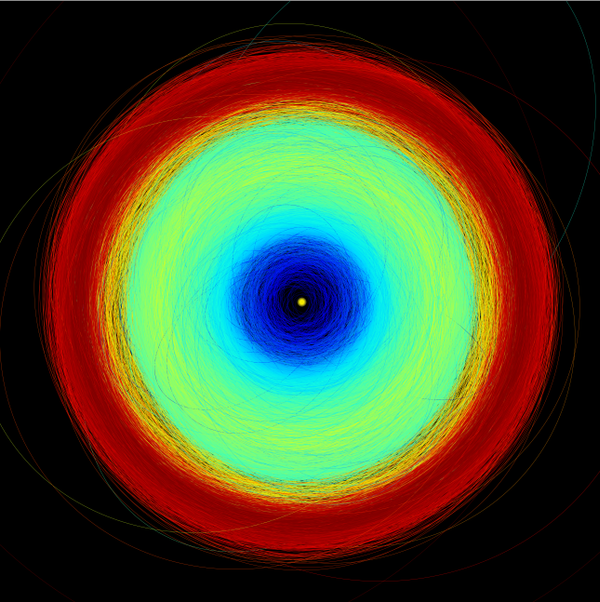 Также во внутренней Солнечной системе имеются группы астероидов с орбитами, расположенными от Меркурия до Марса. Орбиты многих из них пересекают орбиты внутренних планет[84].