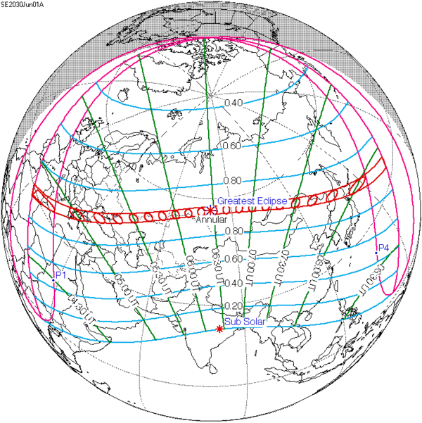 | Солнечное затмение 1 июня 2030 года | |||||||