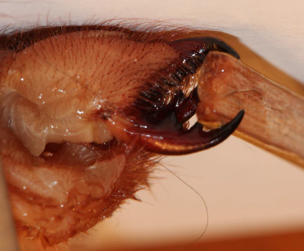 Крупные хелицеры являются одним из самых заметных признаков сольпуг. Из всех паукообразных сольпуги обладают самыми крепкими и упругими хелицерами, способными прокусить человеческий ноготь. Каждая из двух хелицер имеет две части, скреплённые суставом[5], что в совокупности образует клешню, похожую на клешню краба. На хелицерах расположены зубцы, количество которых варьирует от вида к виду[6][4]. Мощность хелицер позволяет сольпугам срезать шерсть и перья жертвы или падали, прорезать кожу и даже тонкие косточки (птиц)[7]. При нападении сольпуги издают пронзительный писк или стрекотание трением хелицер друг о друга[8].