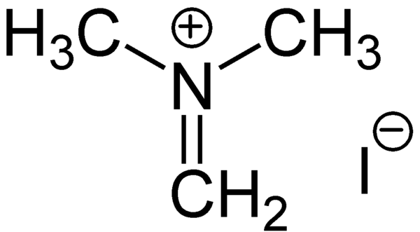 Диметилметилиденаммоний-катион является промежуточным продуктом при аминометилировании по Манниху, в этом случае он образуется в реакционной смеси при взаимодействии формальдегида и диметиламина в кислых условиях: