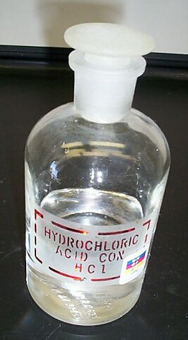 Соля́ная кислота́ (также хлороводоро́дная, или хлористоводоро́дная кислота, химическая формула — HCl) — сильная химическая неорганическая кислота. Раствор хлороводорода в воде.