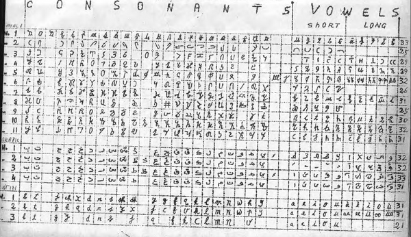 В 1954 году Муса Хаджи Исмаил Галал опубликовал в лондонском журнале «The Islamic Quarterly» ряд сомалийских текстов с использованием своего варианта арабского письма. Обозначения согласных звуков были стандартными, а для обозначения гласных им были изобретены собственные знаки, отличные от знаков арабского письма[3].