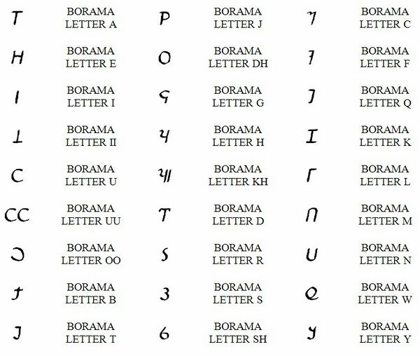 Письмо борама (также известно как письмо гадабурси) было изобретено около 1933 года. Его автором был Абдурахман Шейх Нур. Первое название это письмо получило по городу Борама, рядом с которым было изобретено, а второе — по сомалийскому клану гадабурси, к которому принадлежал его создатель. Письмо представляло собой алфавит со знаками как для согласных, так и для гласных звуков. Записывалось слева направо. Эта письменность не получила широкого распространения и использовалась только автором и его ближайшим окружением[4]. Тексты на письме борама/гадабурси с латинской транскрипцией были опубликованы в 1958 году в журнале Лондонского университета[8].