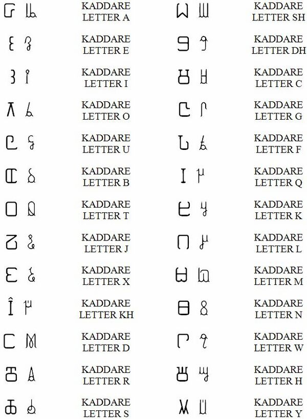 Ещё одна письменность для сомалийского языка, каддаре, была изобретена около 1952 года. Её автором был Хуссейн Шейх Ахмед Каддаре из города Адале. Письмо представляло собой алфавит со знаками как для согласных, так и для гласных звуков. Записывалось слева направо. Сведений о функционировании письменности сохранилось крайне мало. Известно, что были разработаны два начертания — «печатное» и курсивное[4]. Алфавит каддаре был рекомендован комиссией 1960 года для использования в качестве официальной сомалийской письменности, но дальнейшего развития не получил[5].