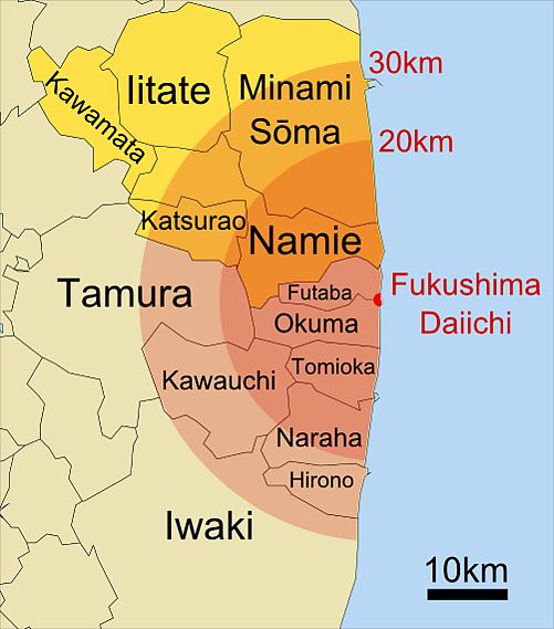 - Намиэ (из уезда Футаба) - приказ об эвакуации был отменен 31 марта 2017 года, но по состоянию на 2019 года «труднодоступная территория» по-прежнему занимает большую часть посёлка (приказ об эвакуации отменён только на юго-востоке посёлка)[9][7]