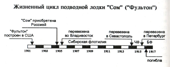 28 апреля 1904 года с Невским заводом, как с представителем фирмы Голланд, был заключён договор на покупку ПЛ «Фултон» с доставкой её в готовом и исправном виде без торпедного оружия в один из портов Балтийского моря. 31 мая 1904 года приказом Морского ведомства эта лодка получила название «Сомъ». Она была отправлена из Америки на пароходе «Менатик» под названием «паровой котёл» 13 июня 1904 года и прибыла в Кронштадт 1 июля в адрес директора Невского завода. Из Кронштадта груз отправили в Петербург на Невский завод, где на лодку были установлены аккумуляторы и снятые при транспортировке механизмы. Сборка лодки закончилась 6 сентября. Командиром лодки был назначен лейтенант В. В. Трубецкой 26 сентября ПЛ «Сом» перешла в Бьерке-Зунд, где были проведены ходовые испытания. Комиссия признала лодку годной «для прибрежной обороны». 10 октября ПЛ перешла в Морской канал, где началось обучение экипажей.