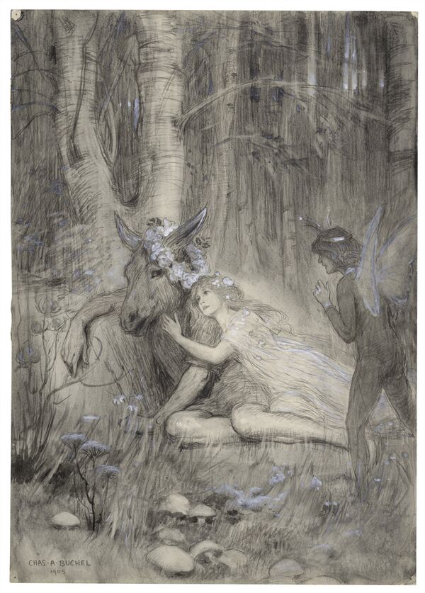 - Серия картин и акварелей Джона Симмонса: «Титания», «Сон Титании в лунную ночь под защитой фей», «Сцена из „Сна в летнюю ночь“» (1873)…