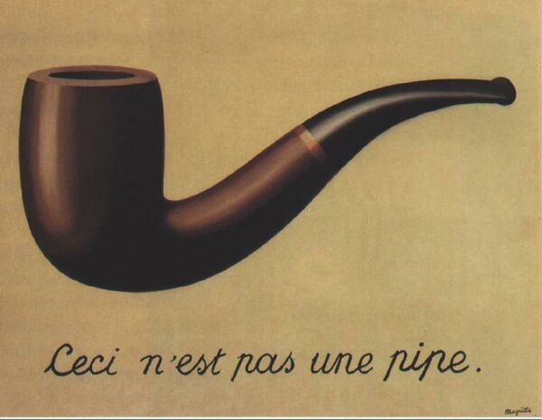Бельгийский сюрреалист Рене Магритт проиллюстрировал концепцию «восприятие всегда стоит между реальностью и нами» в серии картин, включая известную работу под названием «Вероломство образов», на которой нарисована курительная трубка и надпись «Ceci n'est pas une pipe» («Это не трубка»).[4]