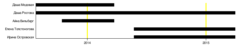 | 4. | Елена Толстоногова | 05.2014 — 03.2015 | 10 месяцев | Закрытие группы | |