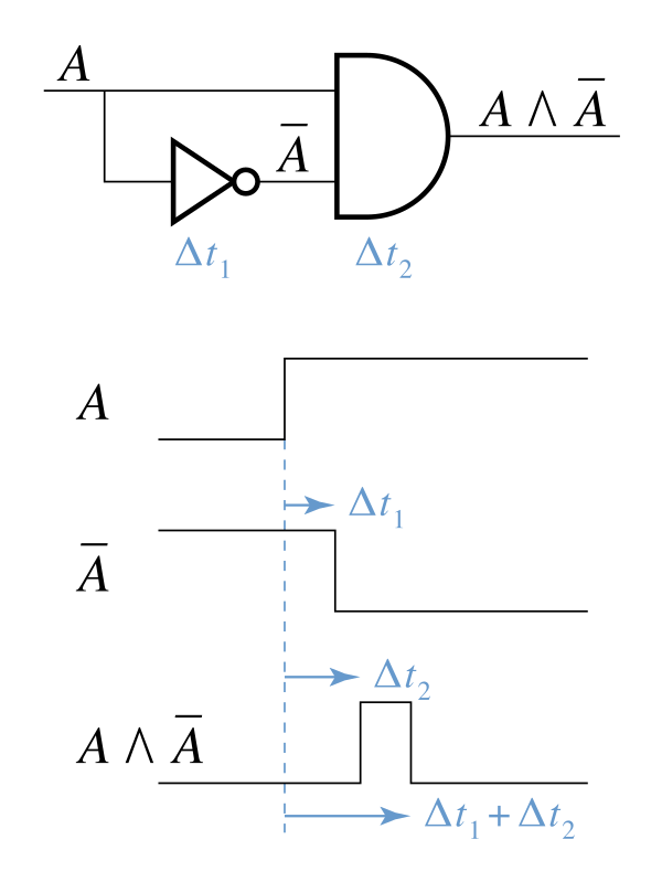 Статическое состояние гонки — возникает при объединении сигнала и его комплемента.