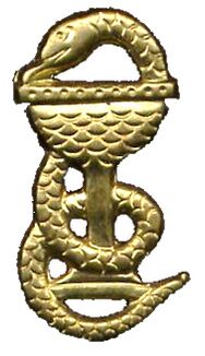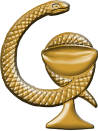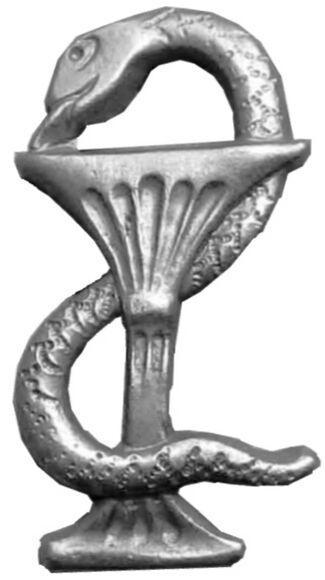 Исторически изображения змеи часто использовались в качестве общих медицинских эмблем. Возникший культ змеи в периоды анимализма и тотемизма характеризовал змей с одной стороны — символом зла, хитрости и коварства, с другой — добра, бессмертия, мудрости и знаний. В III тысячелетии до нашей эры в Месопотамии змея часто изображается с Нингишзидом, считавшимся богом плодородия и исцеления. Также змея изображается в античности с привязкой к медицине, вначале без других предметов, позднее с предметами разными. С VIII столетия до нашей эры одним из символов медицины становится посох Асклепия (не стоит путать с кадуцеем ставшим в некоторых странах также символом медицины значительно позднее). Чаша в сочетании со змеёй (уж), но изображённые раздельно начинают появляться в VII—V веках до нашей эры с привязкой к богиням здоровья Гигее и Салуте. Обвитие змеёй чаши или амфоры в античных изображениях происходит ещё позднее. Змея в сочетании с другими предметами как эмблема медицины использовалась и позднее[1].