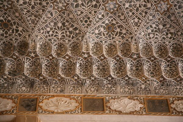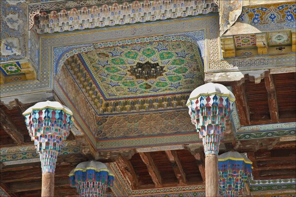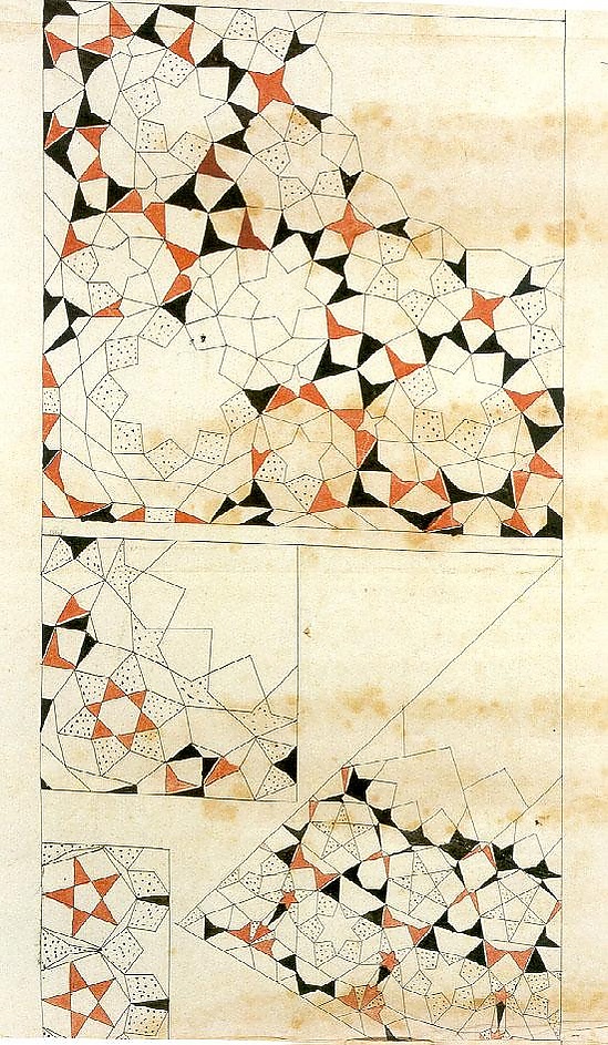 Оригинальный текст (англ.)[показатьскрыть]The muqarnas is a ceiling like a staircase with facets and a flat roof. Every facet intersects the adjacent one at either a right angle, or half a right angle, or their sum, or another combination of these two. The two facets can be thought of as standing on a plane parallel to the horizon. Above them is built either a flat surface, not parallel to the horizon, or two surfaces, either flat or curved, that constitute their roof. Both facets together with their roof are called one cell. Adjacent cells, which have their bases on one and the same surface parallel to the horizon, are called one tier. (Ghiyath al-Din Mas’ud al-Kashi. «Key of Arithmetic», Book IV, «On Measurements», chapter «Measuring Structures and Buildings»)
