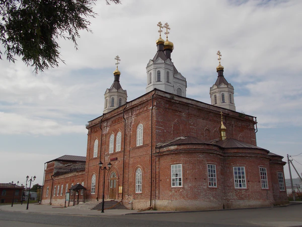 Собор построен в русско-византийском стиле из красного кирпича, имеет единый купол. Около храма располагается звонница.