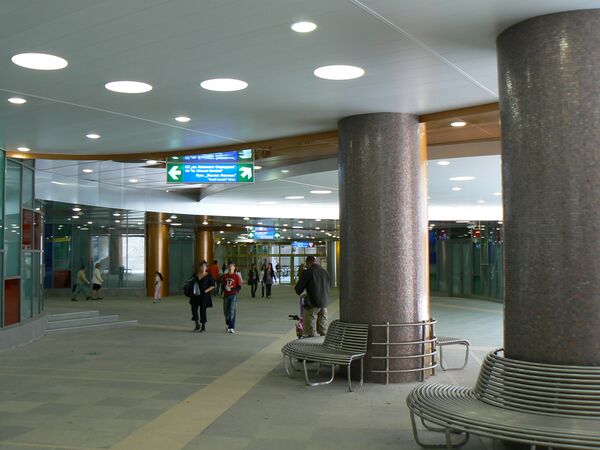 С двух сторон платформы сооружены выходы, на которых стоят четыре эскалатора, лестницы и лифты для трудноподвижных граждан и матерей с детьми.