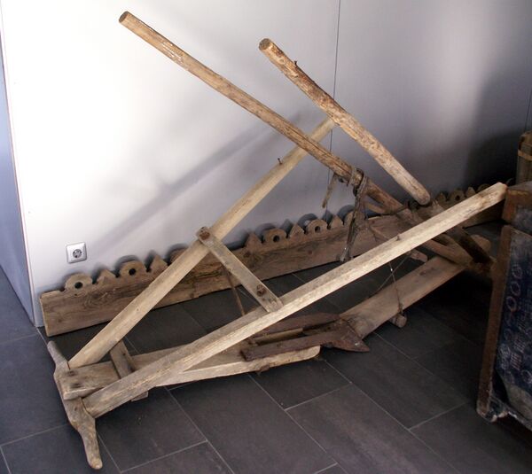 Иногда могла дополняться ножом (отрезом) как у плуга.