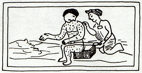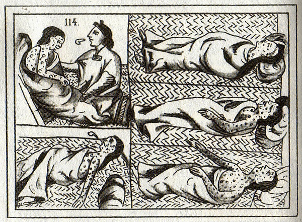 Америка и Австралия не знали кори и оспы до прибытия европейских колонистов в XV—XVIII веках[22]. Наряду с корью и гриппом, оспа была завезена в Америку испанцами[22]. Оспа была эндемична в Испании, куда была завезена маврами из Африки[23]. В 1519 году в столице ацтеков Теночтитлане в Мексике разразилась эпидемия оспы. Её начало положила армия Панфило де Нарваэса, который последовал за Эрнаном Кортесом из Кубы и имел на борту своего корабля африканского раба, больного оспой[23]. Когда испанцы наконец вошли в столицу летом 1521 года, они увидели её усыпанной телами жертв оспы[24].