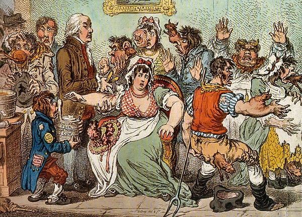 Эксперимент был повторён на одиннадцати сиротах, все из которых пережили испытание, и к 1722 году даже внуки короля Георга I были привиты[51]. Практика не была полностью безопасной, и вероятность смерти составляла один к пятидесяти[52]. Процедура была дорогостоящей; некоторые врачи брали за неё от 5 до 10 фунтов, а некоторые продавали метод другим практикующим врачам за плату от 50 до 100 фунтов или за половину прибыли. Вариоляция стала прибыльным бизнесом, но до конца 1770-х годов она оставалась недоступной для многих[53]. В то время ничего не было известно о вирусах или иммунной системе, и никто не знал, как эта процедура обеспечивает защиту[54].