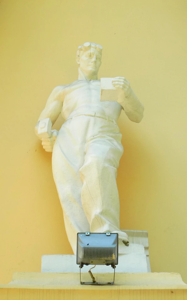 В 1937 году портики торцевых фасадов крыльев здания (со стороны улицы Орджоникидзе и Курортного проспекта) были декорированы монументальными скульптурами «Плотник» работы Лидии Шулик-Ефимовой и «Каменщик» авторства Надежды Вентцель[11].