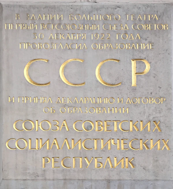 29 декабря 1922 года на конференции делегаций от съездов Советов РСФСР, УССР, БССР и ЗСФСР был подписан Договор об образовании СССР[22]. Этот документ был утверждён 30 декабря 1922 года I-м Всесоюзным съездом Советов и подписан главами делегаций[23]. Эта дата и считается датой образования СССР, хотя Совет Народных Комиссаров СССР (Правительство) и наркоматы (министерства) были созданы только 6 июля 1923 года. Возникновение СССР явилось следствием действий определённых исторических факторов, главным из которых была Великая Октябрьская социалистическая революция[24]. Среди причин образования СССР имели место внешние факторы: угроза новой военной интервенции, экономическая изоляция Советской страны, попытки нажима Запада[24]. К 1922 г. централизация руководства обороной страны была достигнута на всём пространстве[24]. Преобразования федеративных отношений между советскими республиками начались весной 1922 г[24].