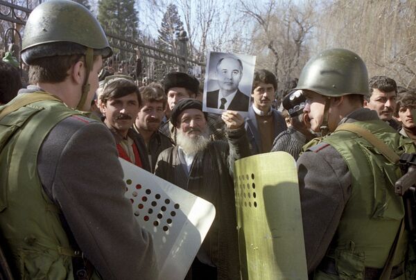 В 1987 году на территории СССР разгорается ряд межнациональных конфликтов, самым острым[92] из которых становится Карабахский конфликт, начиная с 1988 года происходят массовые погромы как армян, так и азербайджанцев[93][94][95][96]. В 1989 году Верховный Совет Армянской ССР объявляет о присоединении Нагорного Карабаха, Азербайджанская ССР начинает блокаду. В апреле 1991 между двумя союзными республиками фактически начинается война.