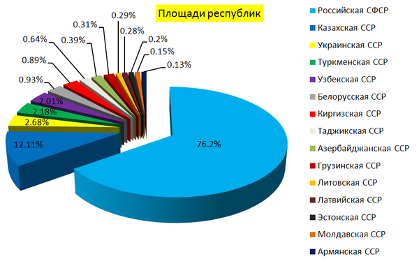 СССР на момент распада занимал почти 1⁄6 часть обитаемой суши Земли[3] с населением 293 млн человек, а также 2-е место в мире по уровню промышленного производства — 16,5 % мирового объёма и 7-е место в мире по уровню национального дохода (3,4 %)[4].