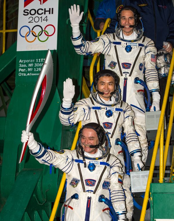 - На транспортном пилотируемом корабле «Союз ТМА-11М» на борт МКС отправился факел «Сочи 2014» — один из главных символов зимних Олимпийских игр 2014 года в Сочи[12]. Олимпийский огонь внесён в эмблему экипажа.