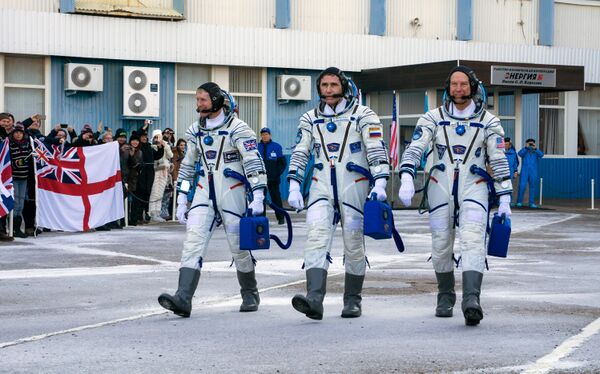 В качестве индикатора невесомости экипаж использовал медальон, посвященный 55-летию полета первого человека в космос[6].
